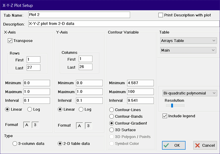 Note that all six types of X-Y-Z plots have additional options that can be viewed or changed after the plot is constructed by right-clicking on the plot to bring up the Modify Plot dialog.
