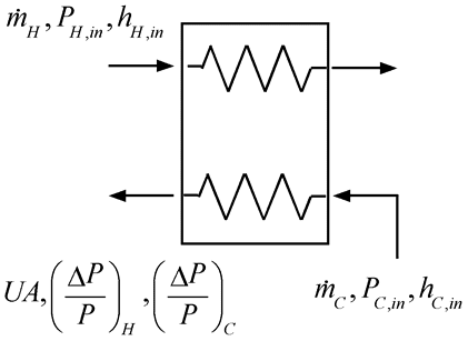 Call Heatexchanger4_cl(F_H$, C_H, P_H_in, h_H_in, m_dot_H, F_C$, C_C, P_C_in, h_C_in, m_dot_C, UA, DPoverP_H, DPoverP_C, N: h_H_out, h_C_out, eff, DT_pp)