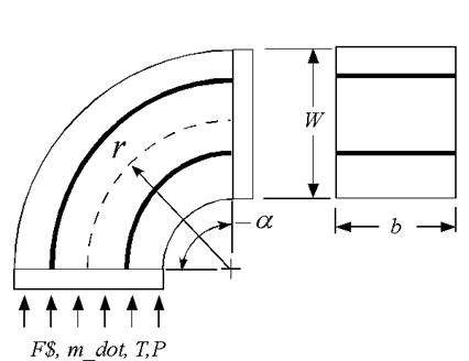 DELTAP = DuctBend_Rect_Splitter_CL(F$, m_dot, T, P, b, W, r, alpha)