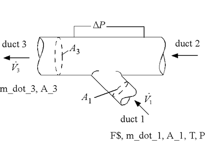 m_dot_3: mass flow rate in main duct upstream of branch (kg/s, lbm/hr)