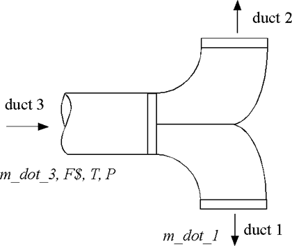 m_dot_3: mass flow rate in main duct upstream of branch (kg/s, lbm/hr)