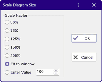 The user of a distributable program can rescale the objects appearing the in the Diagram window by clicking the right mnouse button in the Diagram window. This actiion will bring up the Scale Diagram Size dialog.