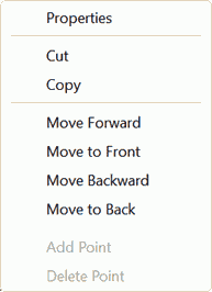 Selecting the Properties menu item will bring up a dialog window in which the characteristics of the selected item(s) can be changed. The Cut and Copy menu items have the usual function. The following four items (Move Forward etc.) affect the order in which the plot objects are displayed. The objects that are most forward are displayed last and thus appear in front of other objects. The Add Point and Delete Point menu items are only active if the selection is a polygon.