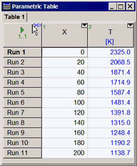 In the Professional license, all tables are equipped with a control to automatically resize the column widths. The control appears as a left-right arrow icon in the upper left cell of the table, as shown below. Clicking the icon causes all of the columns to be adjusted to a width that is just large enough to display all of the information the column. Clicking the icon again returns the column widths to their original values. If the Ctrl key is depressed when the icon is clicked, the column widths will be set to their default values.