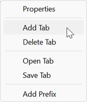 To add a new Tab, right-click on a tab and select Add Tab from the popup window