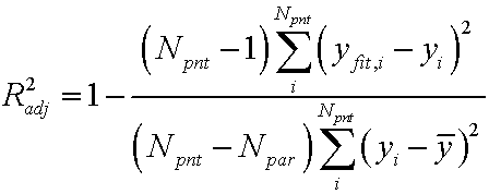 The values of the best fit coefficients and their standard error (expressed both as an absolute and relative value) are reported in the upper table. The lower table provides various statistics.