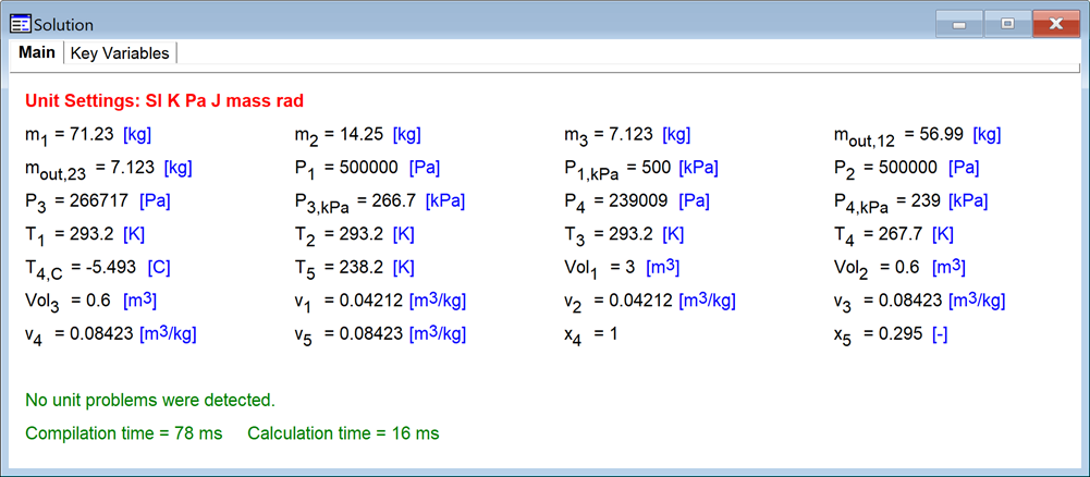 Sample EES Solution with the input variable values changed for the rubric (graded) case.