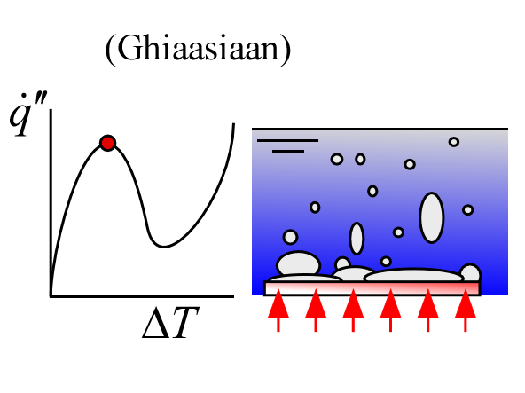 Critical_Heat_Flux_Gh returns the critical heat flux in for the specified fluid and geometry using the information provided in Ghiaasiaan (2008). The correlation suggested by Sun and Lienhard (1970) is used to compute the critical heat flux and then corrections are applied for: