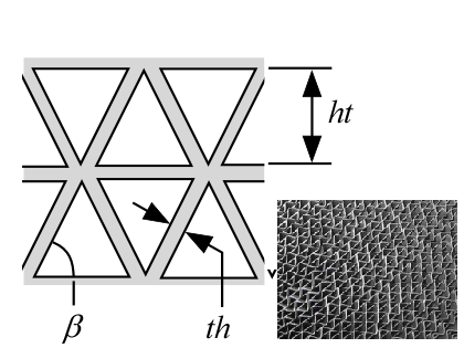 The function Triangular_Channels_ND(Re: f,j_H) returns tht friction factor (f), and Colburn j factor (j_H) for a matrix comprised of triangular channels.