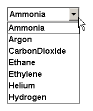 It is possible to use the strings in the drop-down list to set the values of one or more EES variables. This is accomplished by following the string that is to be displayed with characters // and then with one or more EES equations on one line. The total length of the line must be less than 255 characters. For example, suppose you wish to use a drop-down list to have a user select the density and thermal conductivity of one of several substances. You could create a drop-down list with the following strings