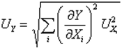 The purpose of this command is to calculate how the uncertainties in each of the measured variables propagate into the value of the calculated quantity, Y. The method for determining this uncertainty propagation is described in NIST Technical Note 1297 (Taylor B.N. and Kuyatt, C.E., Guidelines for Evaluating and Expressing the Uncertainty of NIST Measurement Results, National Institute of Standards and Technology Technical Note 1297, 1994). Assuming the individual measurements are uncorrelated and random, the uncertainty in the calculated quantity can be determined as