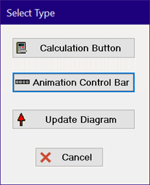 One or more Calculate buttons can be placed on the Diagram window (and on child Diagram windows) by selecting the Create Calculate button in the Diagram window tool bar. In the Professional license, the small window shown below will appear with four buttons. Click the Calculation Button. The Calculate Button Characteristics dialog will appear.