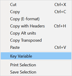 Array variables may be designated as key variables to be displayed in the Solution window. To designate an array variable as a key variable, select it in the Arrays table and right-click on it. Then select Key Variable from the popup menu.