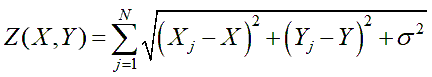 The weights are found by solving the linear system of N equations that force the above equation to perfectly represent the provided data. Once the weights are determined the equation is used to interpolate or extrapolate the values of Z to particular values of x and y. The computations needed to determine the weights are O(N cubed) so there is a practical upper limit to the number of points (N) that can be accommodated. This upper limit is controlled by the Resolution slider. If more data points are provided than are specified by the Resolution slider, EES will select a subset of the data using a clustering algorithm. At full resolution, you may have to wait a while for the plot to be prepared depending on the speed of your computer.