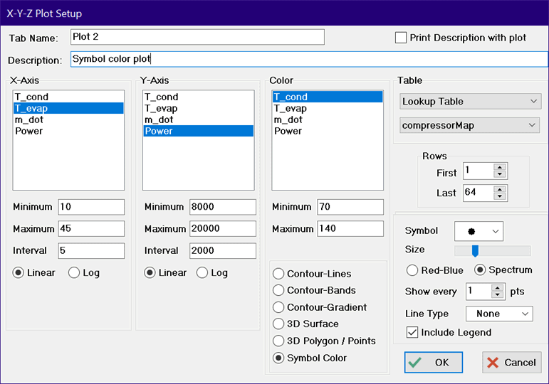 Note that all six types of X-Y-Z plots have additional options that can be viewed or changed after the plot is constructed by right-clicking on the plot to bring up the Modify Plot dialog.