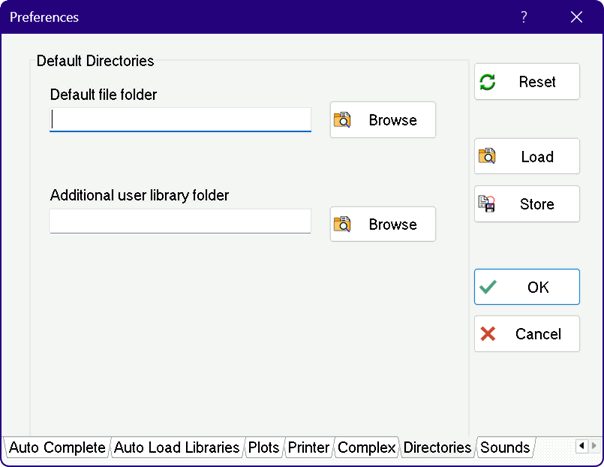 This preferences window allows two default directories to be specified.