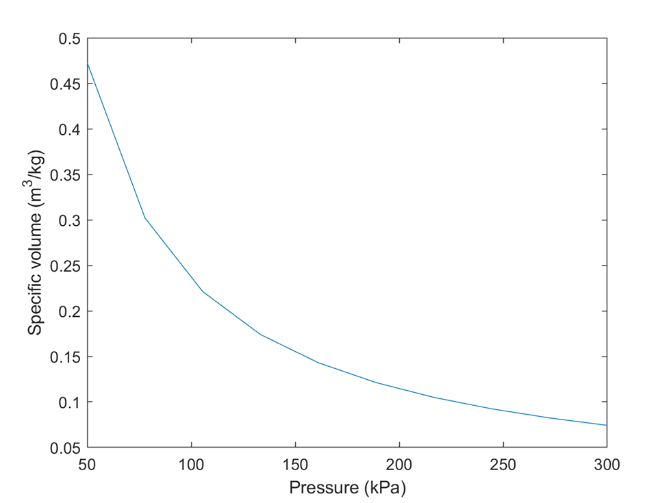 ylabel('Specific volume (m^3/kg)');