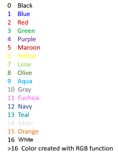 Color1 is the color used for the group 1 constant property lines. ColorID is either an integer between 0 and 16 or a color name as indicated in the following table.