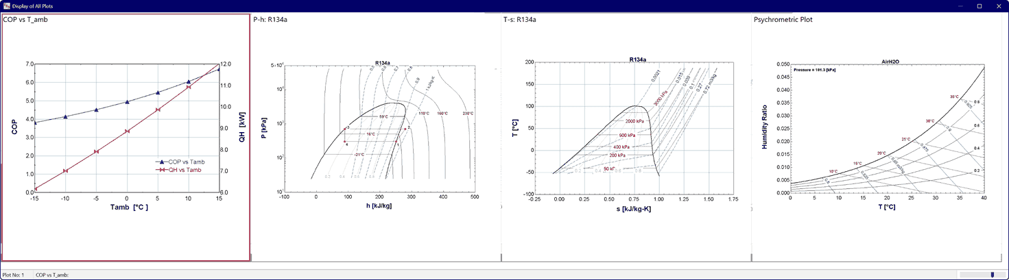 The Plot Thumbnails window can be accessed in the Professional license when an EES file contains two or more plots. The window displays thumbnails of all of the plots in the EES file, as shown in the example below.