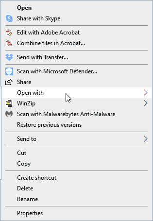 NOTE: If EES fails to successfully enter the password and open Mastering EES, the problem is likely that the default application for opening .pdf documents on your computer has been reset to Microsoft Edge. Use of Microsoft Edge works with some computers but it is slower and the delay time before EES enters the password may be too short. You can fix this problem by selecting a different default application to open .pdf documents. To do this, first right-click on any .pdf file and select the Open with menu command.