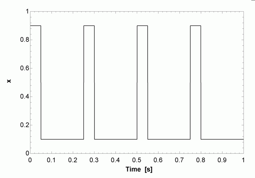 x=squarewave(Time,Period,V1,V2,DutyCycle)