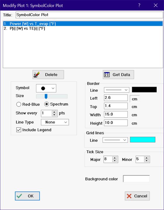 Right clicking or double-clicking on a Symbol Color plot will bring up the following dialog that can be used to change the appearance of the plot.