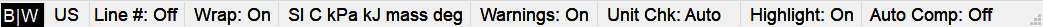 A status bar (shown below) is provided at the bottom of the Equations window that shows the current setting of various controls and provides an easy way to modify therm.