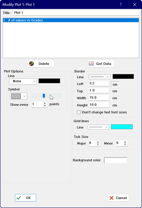 Changes to the plot can be made in the Modify Plot dialog. Right-click within the plot rectangle or selecte Modifiy Plot from thje Plots menu.