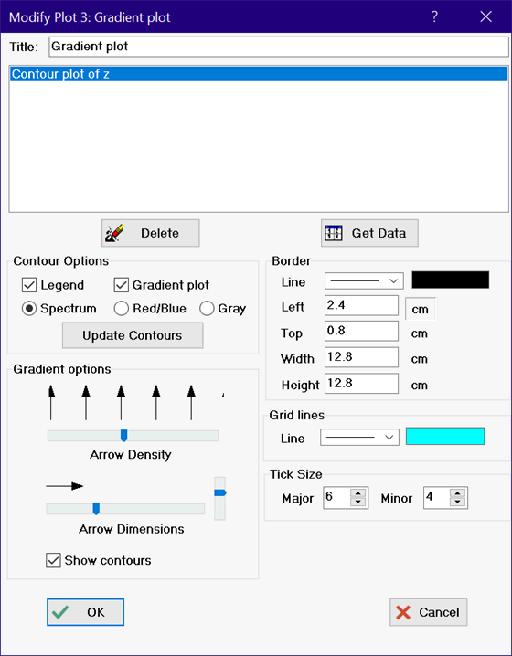 Right clicking or double-clicking on a contour or gradient plot will bring up the following dialog that can be used to change the appearance of the plot.